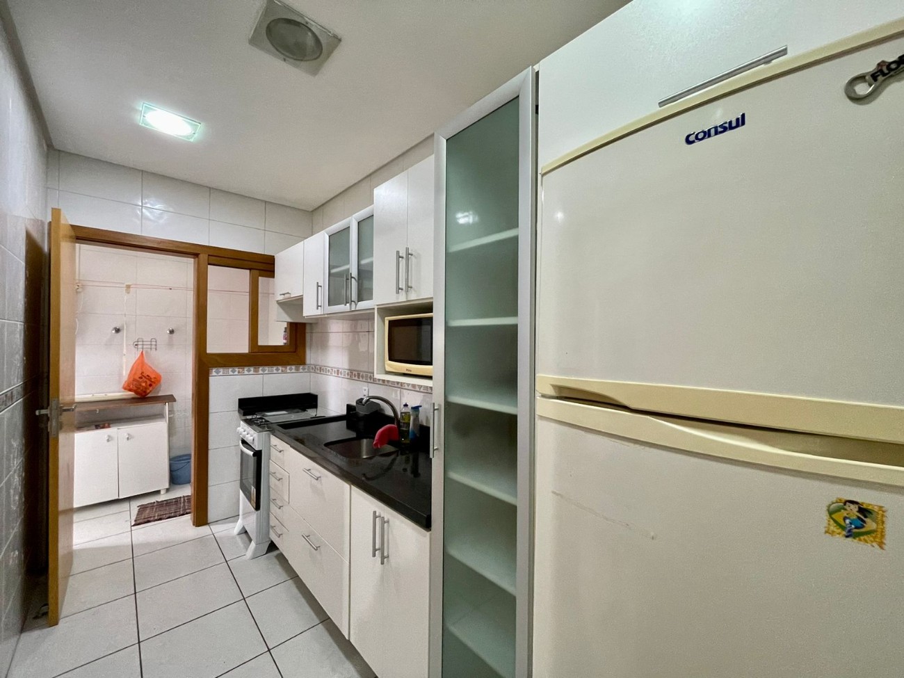 Apartamento 02 dormitórios, sendo 01 suíte, mobiliado, sacada com churrasqueira, cozinha, área de serviço separada e box de garagem de fácil acesso. Edifício localizado no Centro, pertinho do antigo mercado Nacional e a poucos minutos da praia. O prédio conta com hall de entrada, elevador, zeladoria permanente e portaria eletrônica.
