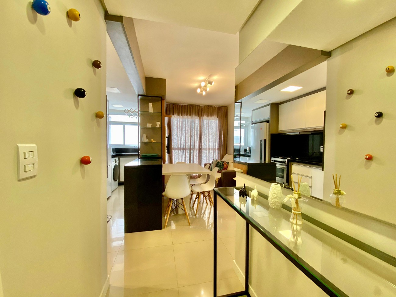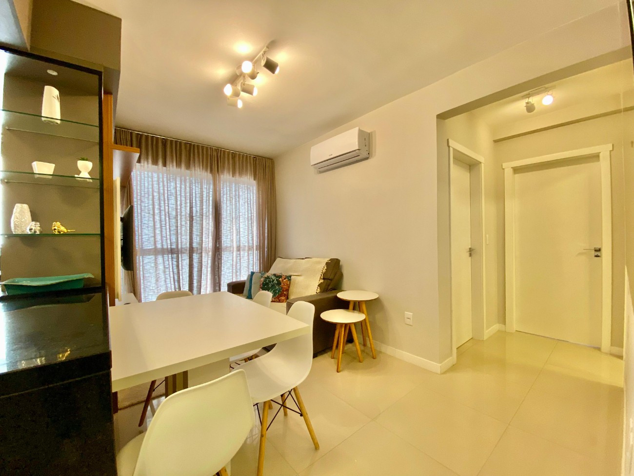 Alto padrão construtivo! Bairro Navegantes! Apartamento Leste/Norte, mobiliado & decorado, composto por 2 dormitórios, sendo 1 suíte, banho social, amplo living 2 ambientes, cozinha americana, churrasqueira, área de serviços e 1 box de estacionamento. Edifício de alto padrão, 100% revestido, hall de entrada decorado, 2 elevadores, gás central, hidrômetro individual, porteiro eletrônico, zeladoria permanente, maravilhosa infraestrutura de lazer (salão de festas e piscina). Localização privilegiada, na região mais valorizada da cidade e a poucas quadras do mar. Gostou do imóvel? Entre em contato conosco e agende a sua visita!