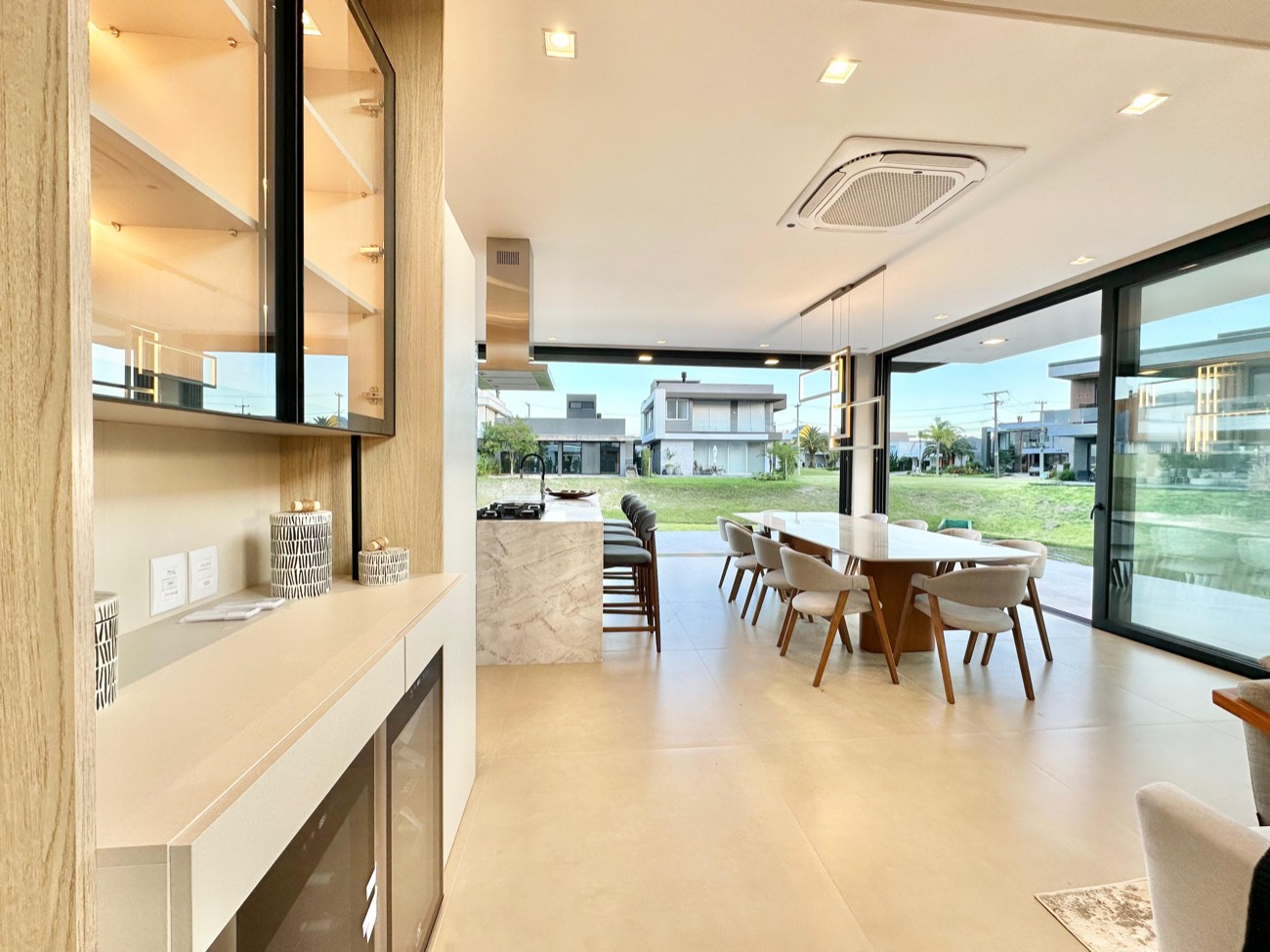 Se você busca o máximo de conforto, segurança e sofisticação, essa casa é a escolha perfeita para você e sua família. Localizada em um dos melhores condomínios da região, essa magnífica residência oferece tudo o que você precisa para viver com qualidade de vida e exclusividade. 5 Suítes espaçosas, todas com acabamento de alto padrão, armários planejados e ar-condicionado; Suíte master com closet e proporcionando um ambiente de relaxamento e conforto; Living amplo e integrado: Sala de estar, jantar e TV com pé direito duplo, ambiente iluminado e ventilado, perfeito para receber amigos e familiares; Cozinha gourmet planejada, com bancada em granito e eletrodomésticos de última geração; Área externa com piscina privativa para momentos de lazer e descontração com toda a família; iluminação natural, ideal para quem trabalha em casa; Área gourmet com churrasqueira, bancada para preparo de refeições, perfeita para confraternizações.
