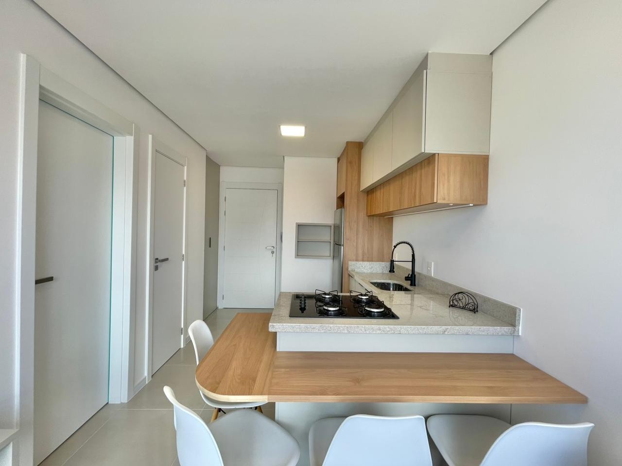Composto por 01 suíte, lavabo, living integrado, cozinha americana, churrasqueira, área de serviços e 01 vaga de estacionamento. Edifício de alto padrão, fachada 100% revestida, hall de entrada finamente mobiliado, 2 elevadores, gás central, hidrômetro individual, infraestrutura completa de lazer no Rooftop (piscina, salão de festas, sala de jogos academia e linda vista para o mar e serra), portão e porteiro eletrônicos, zeladoria permanente. Localização privilegiada, a poucos metros da Avenida Ubirajara e da praça tiaraju.