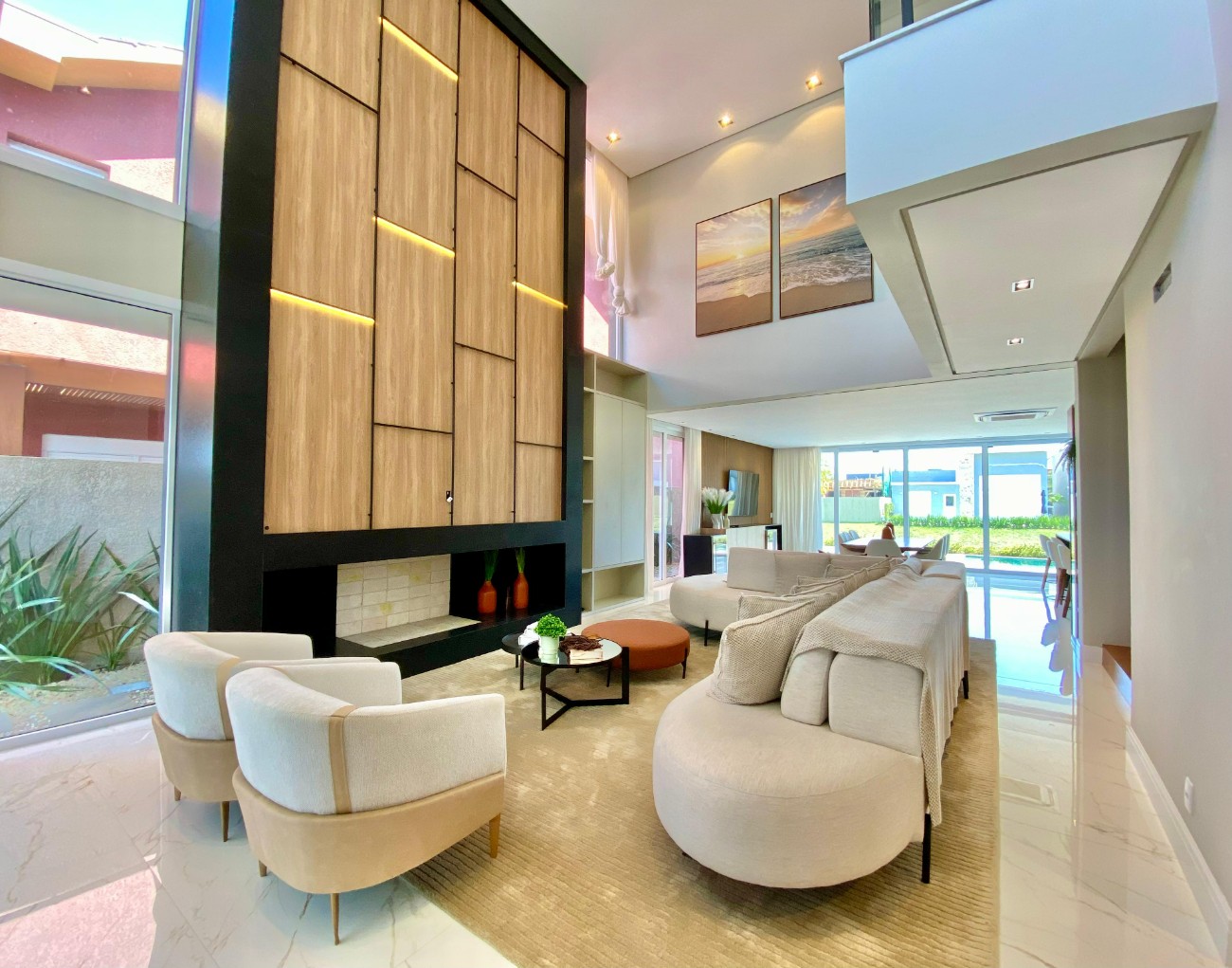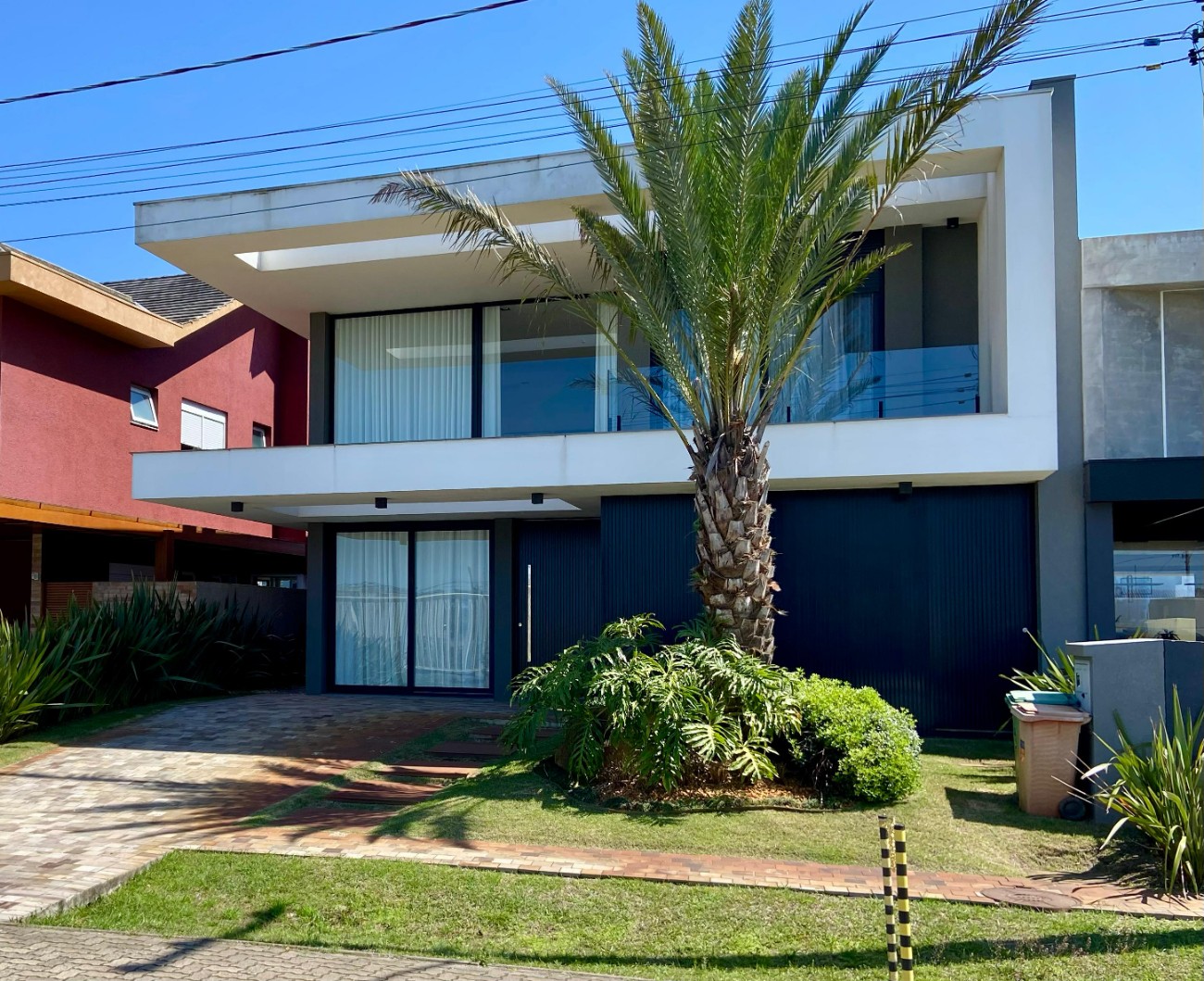 Sobrado novo, finamente mobiliado & decorado, beira de lago no Condomínio Capão Ilhas Resort em Capão da Canoa! Imóvel composto por 4 suítes (sendo 1 suíte térrea e 1 suíte máster), lavabo, amplo living em 3 ambientes com pé direito duplo, lareira, cozinha americana, churrasqueira, área de serviços separada e abrigo para 2 carros. São aproximadamente 275m², alto padrão de acabamentos, piso porcelanato, rebaixada em gesso, esquadrias em PVC, esperas para split e água quente, amplo pátio nos fundos com piscina e lindo paisagismo. Conforto, sofisticação e segurança, em um condomínio de luxo, com fantástica infraestrutura de lazer integrada a exuberante natureza à beira da Lagoa dos Quadros em Capão da Canoa! Construtora estuda receber imóvel de menor valor e condição de pagamento facilitada! Gostou do imóvel? Entre em contato conosco e agende a sua visita!